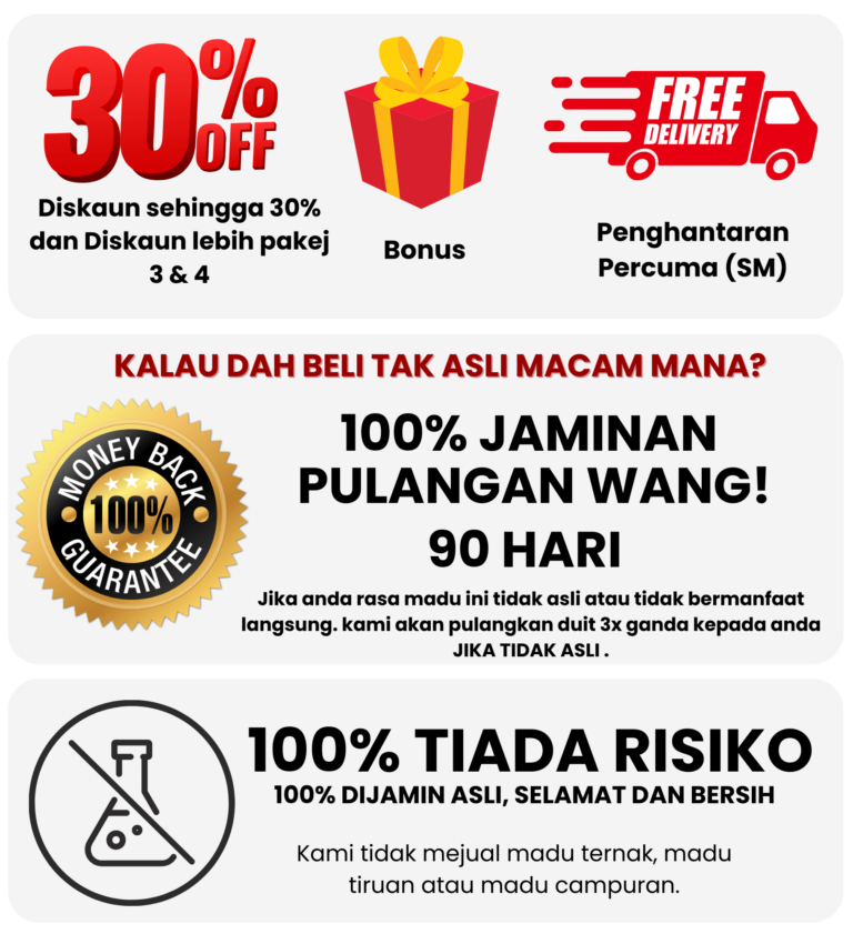 Biarkan je masalah kesihatan berlarutan, beli madu sembarangan yang belum tentu asli bersih dan berkualiti.