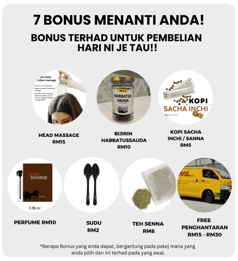 Disclaimer/Penafian: Kami tidak dapat menjamin hasil yang sama bagi setiap individu, kerana keberkesanan produk berbeza-beza bergantung kepada faktor-faktor seperti keadaan kesihatan, penggunaan produk secara konsisten, dan lain-lain faktor peribadi.