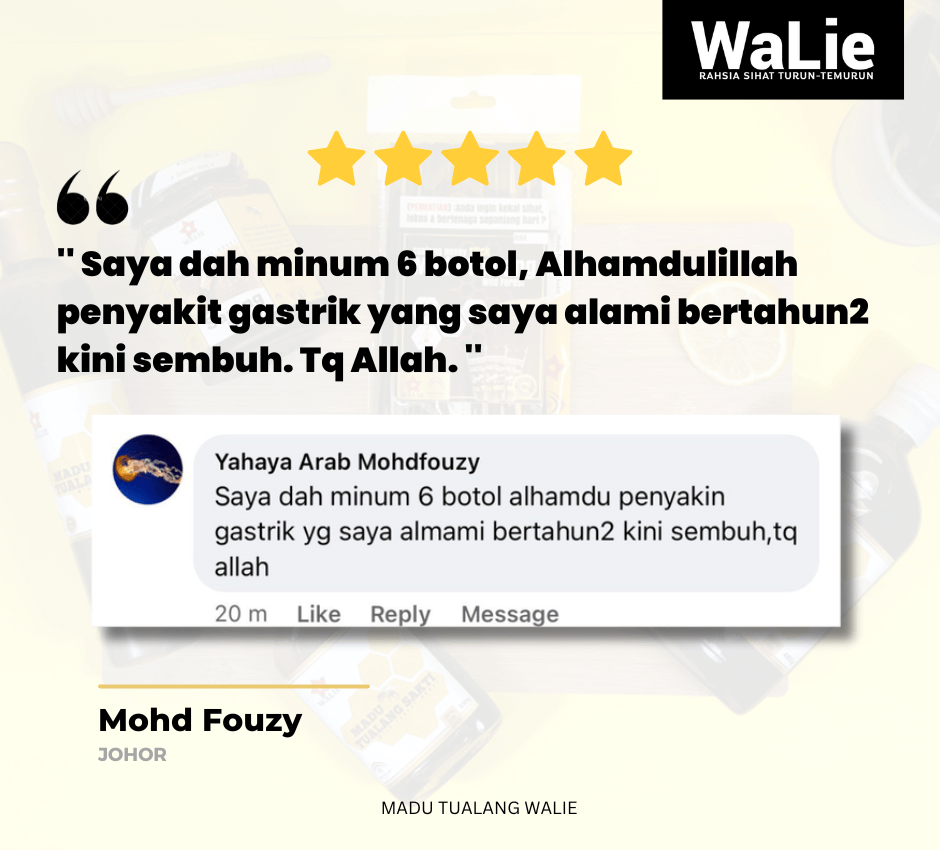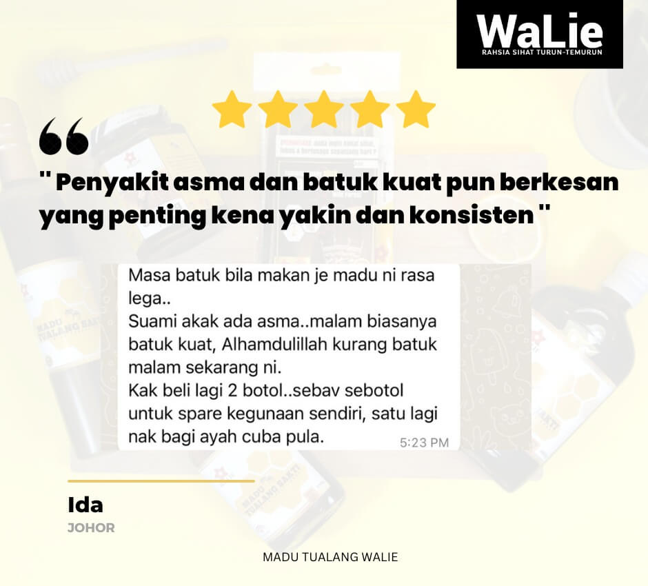 Ikhtiar dengan Madu Tualang Walie – diuji makmal, terbukti asli, dan disyorkan oleh ribuan pengguna yang dah rasa perubahan.